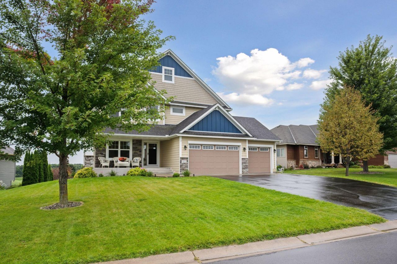 Set along the Riverwood National Golf Course, this thoughtfully designed home offers over 3,600 square feet of finished living space with comfort and practicality in mind. Built with the highest quality in mind by Dingman Customers in 2015.The main floor begins with a striking two-story foyer, complete with a chandelier that sets the tone for the home. A well-sized office sits just off the entry, designed with modern work needs in mind. The living features expansive south-facing windows for abundant natural light, a gas fireplace, and customer blinds for added versatility. The kitchen is equipped with dual wall ovens, a gas cooktop with stainless hood, built-in microwave, dishwasher, refrigerator, and a spacious walk-in pantry, A maintenance-free deck extends just beyond, offering views of the golf course. The mudroom and half bath connect to the heated, insulated three-car garage-finished with an enameled floor and a convenient pet washing station. Upstairs, you'll find three bedrooms, including a primary suite with a walk-in closet and 3/4 bath. A full bath serves the other bedrooms, complemented by a loft area and laundry room for everyday ease. The finished walkout lower level was designed for both relaxation and entertaining. Filled with natural light, it includes a large family room with a stacked-stone fireplace, a wet bar and recreation area, a full bathroom, and a comfortable additional bedroom. From here, a patio leads directly to the space below the deck, seamlessly connecting the interior with the outdoors. The utility and storage areas reflect the builder's attention to detail, with features such as a radon mitigation system, air exchanger, water softener, central air, humidifier, sump pump, and spray-foam insulated rim joists for efficiency.This well-maintained home combines thoughtful finishes with practical upgrades throughout, making it a wonderful opportunity for its next owner. Be sure to explore the 3D Matterport tour and floor plan included in the tour links for a complete view of this property.