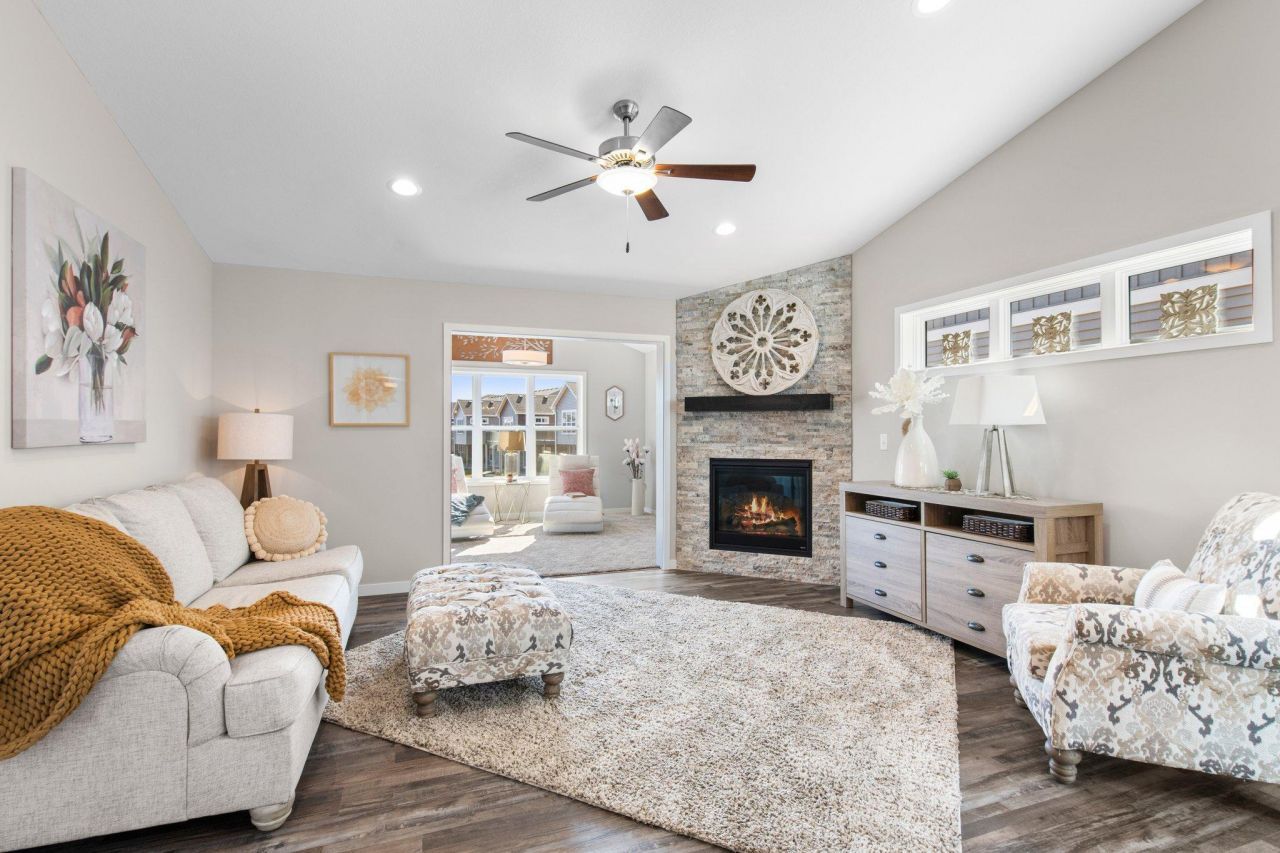 HUGE PRICE REDUCTION! This is the last home available in Ridgeview Highlands 2nd Addition. This beautiful model home is loaded with upgrades is available for immediate possession! Open concept living including 3 bedrooms/3 bathrooms,sunroom, maintenance free deck, huge 30'x12' patio , vaulted ceilings, birch cabinetry with soft close doors and drawers, quartz countertops, stainlesssteel appliance package, built in pantry, center island workspace and two Ledgestone fireplaces. The owner's suite features a large walk-incloset with organizers, spacious ensuite bath with 5? full ceramic shower and glass door. You will enjoy lots of windows to see the panoramic viewover looking a wooded valley area with lots of wildlife! Start enjoying a LOW MAINTENANCE lifestyle in the beautiful city of Red Wing. We are open some weekends in the fall or by appointment. See supplements for additional information. We accept contingent purchase agreements for the sale of your home!