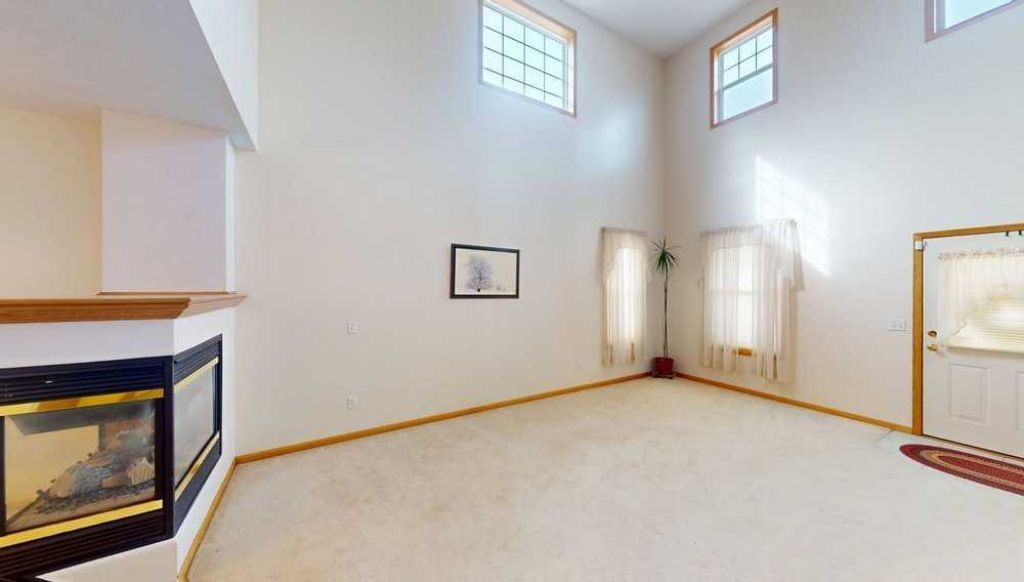 Welcome home to this move-in ready 2BR/2BA end-unit townhome in Blaine! Conveniently located near I-65 with shopping and dining just minutes away, everything you need is within easy reach. Enjoy a spacious living room with soaring two-story ceilings, abundant natural light, and a stunning dual-sided fireplace?perfect for cozy evenings. The adjoining dining area features sliding patio doors that open to the backyard. The kitchen offers ample cabinet and counter space, plus a breakfast bar for additional seating. A convenient half bath completes the main level. Upstairs, a versatile loft adds extra living space, ideal for an office or lounge area. Both bedrooms are on the upper level, including a primary suite with a walk-in closet and walk-through access to a full bath featuring dual sinks, a jetted tub, and separate shower. Don't miss your opportunity to own this beautiful townhome!