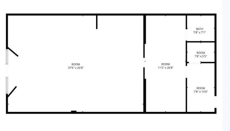 Versatile commercial space offering an open-concept layout with excellent flexibility for retail, studio, showroom, or light production use. The property features a spacious main area measuring approximately 37'6 x 26'8, providing ample room for displays, workstations, or customer engagement.Large front windows and a glass entry door allow for natural light and street visibility. The interior includes a secondary room measuring approximately 11'5 x 26'8, along with additional private rooms suitable for office, storage, or specialty use. An ADA-accessible restroom adds convenience and functionality.Additional highlights include overhead lighting throughout, durable flooring, shelving and workspace areas, a utility sink, and dedicated back-of-house workspace. The practical floor plan supports a variety of business operations with clearly defined work and support areas.