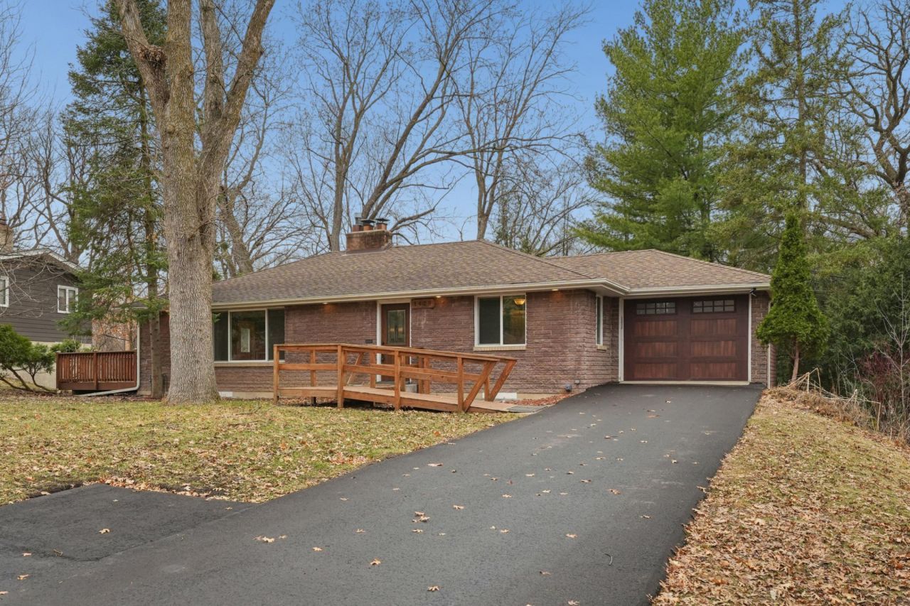 Nicely updated brick rambler near Wesley Park in Golden Valley. Main level living with large updated kitchen, living room with fireplace and beautiful hardwood floors throughout. Main level owners suite with large ensuite bath and walk in closet with washer dryer hookup in closet for one level living. Enjoy the large side deck this summer with fantastic yard. Walk-out basement features 3 additional large bedrooms, each with their own bathroom with shower. Spacious family room features a second wood burning fireplace and sliding doors to backyard. Everything is done here, move in and enjoy!