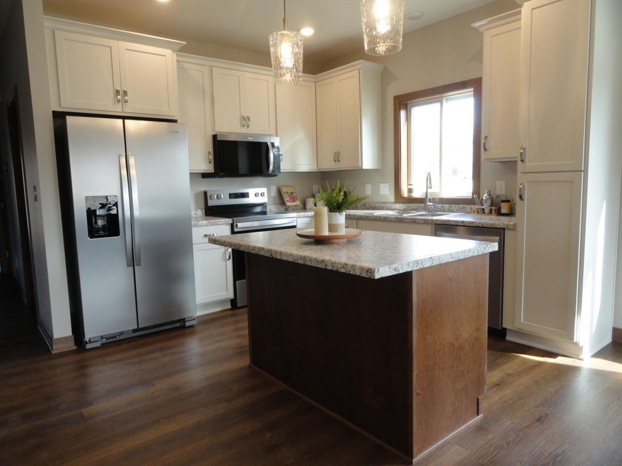 Welcome Home to Zumbrota! Step into this brand new 2-bedroom, 2-bathroom condo, thoughtfully designed with an open floor plan perfect for modern living. Both bedrooms feature spacious walk-in closets, and the owner's suite includes a private bath with double vanities, a walk-in shower, and a linen closet for added storage. This slab home is finished with luxury vinyl plank flooring in the main living areas, cozy carpeting in the bedrooms, and tasteful tile in the bathrooms. Enjoy peaceful mornings or relaxing evenings on your patio overlooking a treed backyard. Located on a quiet cul-de-sac, this home offers maintenance-free living thanks to an association that covers snow removal, lawn care, and exterior insurance. Don't miss this opportunity for comfort, convenience, and community in Zumbrota!