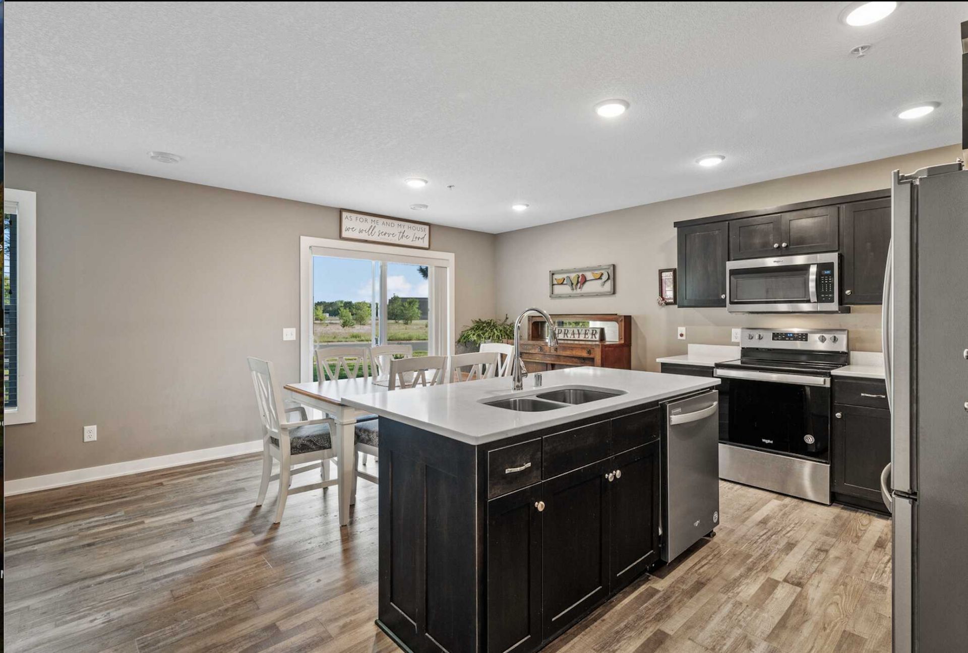 No shoveling. No mowing. Just easy living.This newer-built Saint Francis townhome is move-in ready with 3 bedrooms, 3 bathrooms, and a backyard walkout. The kitchen is built for all your cooking needs featuring luxury finishes with a center island, ample storage, and a layout that makes gathering effortless. Step out through the backyard walkout for added flexibility and outdoor enjoyment or grilling throughout the summer months.Move-in ready with quick closing possible, this home is ideal for first-time buyers looking to break into the market, downsizers wanting simplicity, or investors seeking a strong rental without the upkeep.Enjoy a 2-car garage, nearby trails, and close proximity to shopping, dining, and everyday amenities. Pride in ownership can be seen throughout and this one has everything you need, without the extra work!