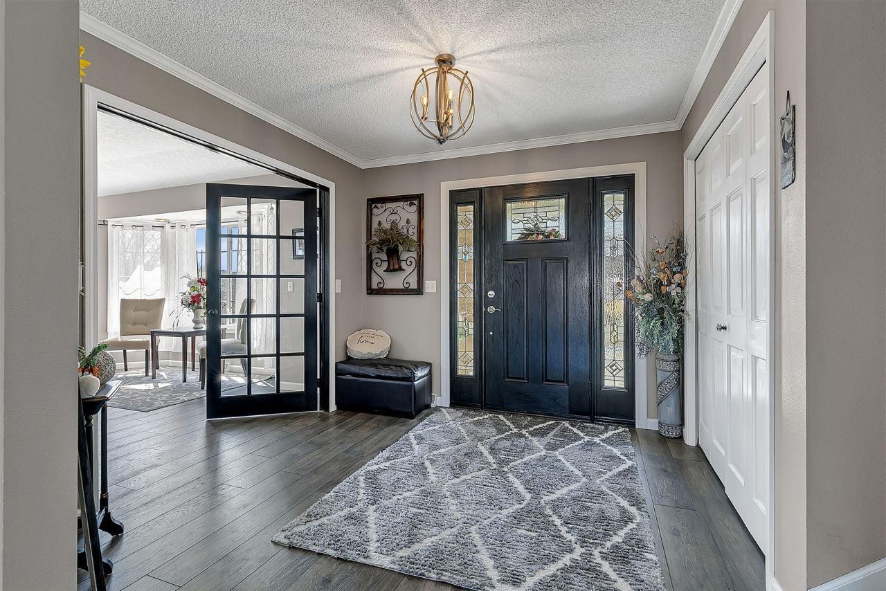 Welcome to Sterling Heights! Spacious 5 bedroom, 4 full bathroom home featuring 3 bedrooms on the same level. The main floor offers a functional layout with laundry, formal dining room, and a comfortable living room with gas fireplace. The primary suite includes a full private bathroom and walk-in closet. Heated 3 stall garage.The finished lower level is ideal for entertaining or additional living space, complete with a second gas fireplace, wet bar, 5th bedroom, full bathroom, and generous storage.Enjoy the outdoors with a two-tiered deck featuring a hot tub, along with a colored and stamped concrete patio and fenced yard. Property backs to public land with walking trails, offering added privacy with no rear neighbors. New roof in 2022.