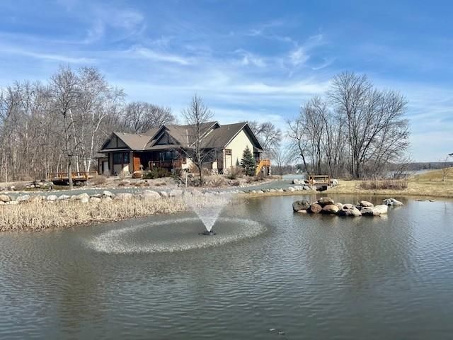 Whoever said that money cannot buy happiness never lived in this home! Welcome to 25493 West Comfort Lake Drive, a stunning lakeside retreat that spans over 4,700 square feet on the western shores of Comfort Lake, a serene, full-recreation lake just 30 minutes from the Twin Cities. This unique custom-built sanctuary offers an unparalleled escape, featuring impressive vaulted ceilings with hand-scribed beams, imported logs, ash hardwoods imported from Vermont and expansive windows that frame breathtaking eastern exposure views of the beautiful lake.The main-level living room perfectly balances design and comfort, showcasing 15-foot ceilings and custom hand-scribed logs imported from Michigan. The large lakeside windows draw your gaze to stunning views and provide access to an expansive lakeside deck. A beautiful fireplace serves as a striking focal point in this space, exuding warmth and coziness?ideal for family gatherings or quiet evenings by the fire.At the heart of the home is the kitchen, designed with an open-concept layout that enhances waterfront living. The generously sized lakeside primary suite on the main floor includes a large bathroom, along with three additional rooms: another bedroom, an office, a laundry room, and a lakeside flex room. The walkout lower level offers endless possibilities with a large recreation room that is perfect for movie nights and gatherings, an additional flex room, a safe room, and ample storage areas.For those with a passion for vehicles or hobbies, the MEGA RARE, massive 62x35 heated Morton outbuilding is set up perfectly, featuring tall ceilings and two large overhead doors on either side.The property spans 2.3 acres of meticulously manicured grounds, fully irrigated and adorned with lush landscapes, including a large pond with an accessible bridge and a breathtaking water fountain. Custom decks and walkways surround the residence, complete with new hand-scribed railings and maintenance-free decking. The impressive lakeside lawn features expansive open green spaces with a gradual slope leading to 150 feet of direct, private waterfront.This compound is truly one of a kind and is only being offered on the market for the second time.