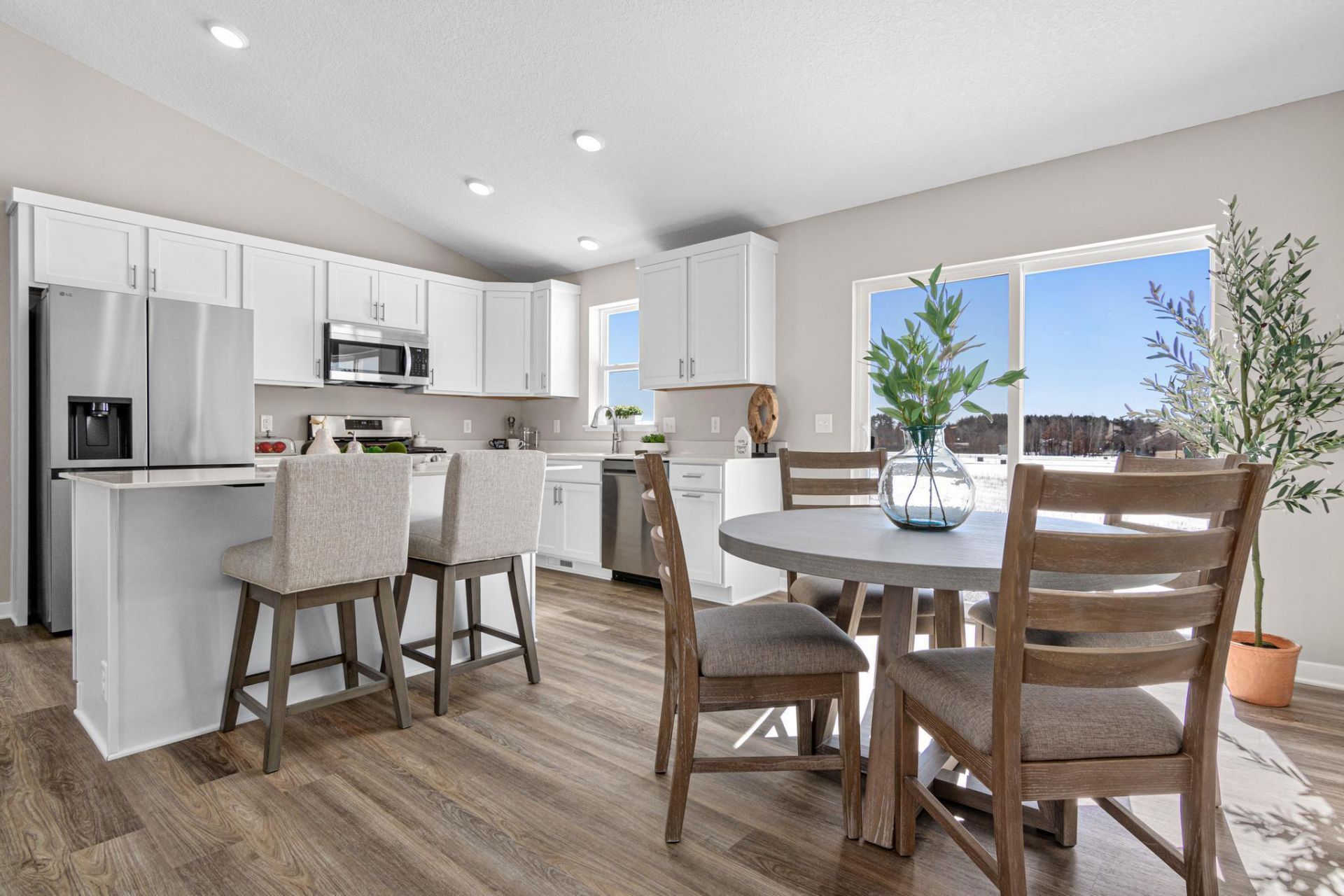 New construction offering an estimated August move-in. Home is scheduled to be excavated in April. Located on a Walkout Homesite! The Main Living Area features a Vaulted Ceiling, Great Room, Dining Room, Kitchen, 3 Bedrooms, and 2 Bathrooms. Kitchen highlights include a center island, window overlooking the backyard, stainless steel appliances, quartz countertops, and white cabinets. Primary Suite features a Private Bathroom and Walk-in Closet. Bedroom 2 and 3 also include Walk-in Closets. The unfinished Walkout Lower Level is ready for future finish including a future family room, 4th & 5th bedrooms, and 3rd bathroom. Sod, Irrigation System, & Front Plantings included. No changes can be made to plan or finishes. Rendering and some photos may not depict actual plan, materials, & finishes may vary. All measurements are approximate.