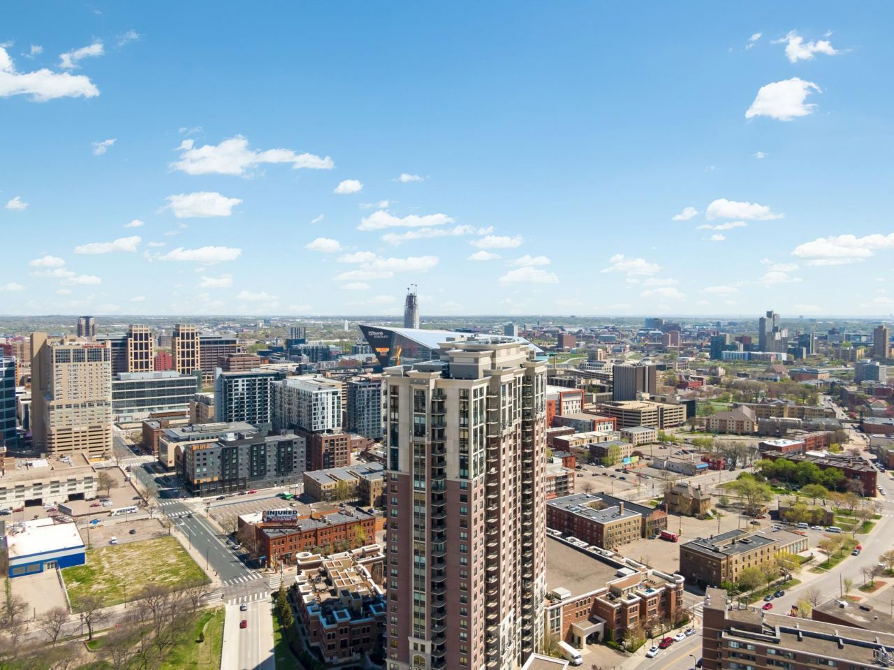 Perched on the 11th floor of the coveted Grant Park building, this stunning corner unit offers luxury living in a convenient downtown Minneapolis location. Featuring over 1,900 square feet of thoughtfully designed living space, panoramic skyline views, and walls of windows that flood every room with natural light, this 2 bed 3 bath residence is as breathtaking as it is livable. The gorgeous kitchen strikes a perfect balance of warmth and modern sophistication, featuring beautiful cabinetry, clean lines, gas range with vented hood, and breakfast bar. The open-concept living and dining area is grand enough to accommodate substantial furnishings and a full dining table, making it perfect for hosting large gatherings or everyday living. An adjacent den offers exceptional versatility to suit your lifestyle, whether it's a second living room, home office, or a potential third bedroom conversion. The primary suite is a true sanctuary, appointed with a generous walk-in closet, serene neutral palette, and en suite bath complete with separate tub and shower. Positioned at the opposite end of the residence for maximum privacy, the second bedroom also features a walk-in closet and an adjacent spacious bathroom with walk-in shower. Step outside to a spacious covered balcony and take in the sights and energy of the city below. Grant Park residents enjoy an exceptional suite of first-class amenities - many which were recently refurbished - including a fitness center, spa, indoor pool, community room, co-working space, and dedicated conference rooms, along with a beautifully landscaped outdoor patio with pergola and fire pits. A rare opportunity to own a spacious luxury condo in one of downtown's premier buildings.