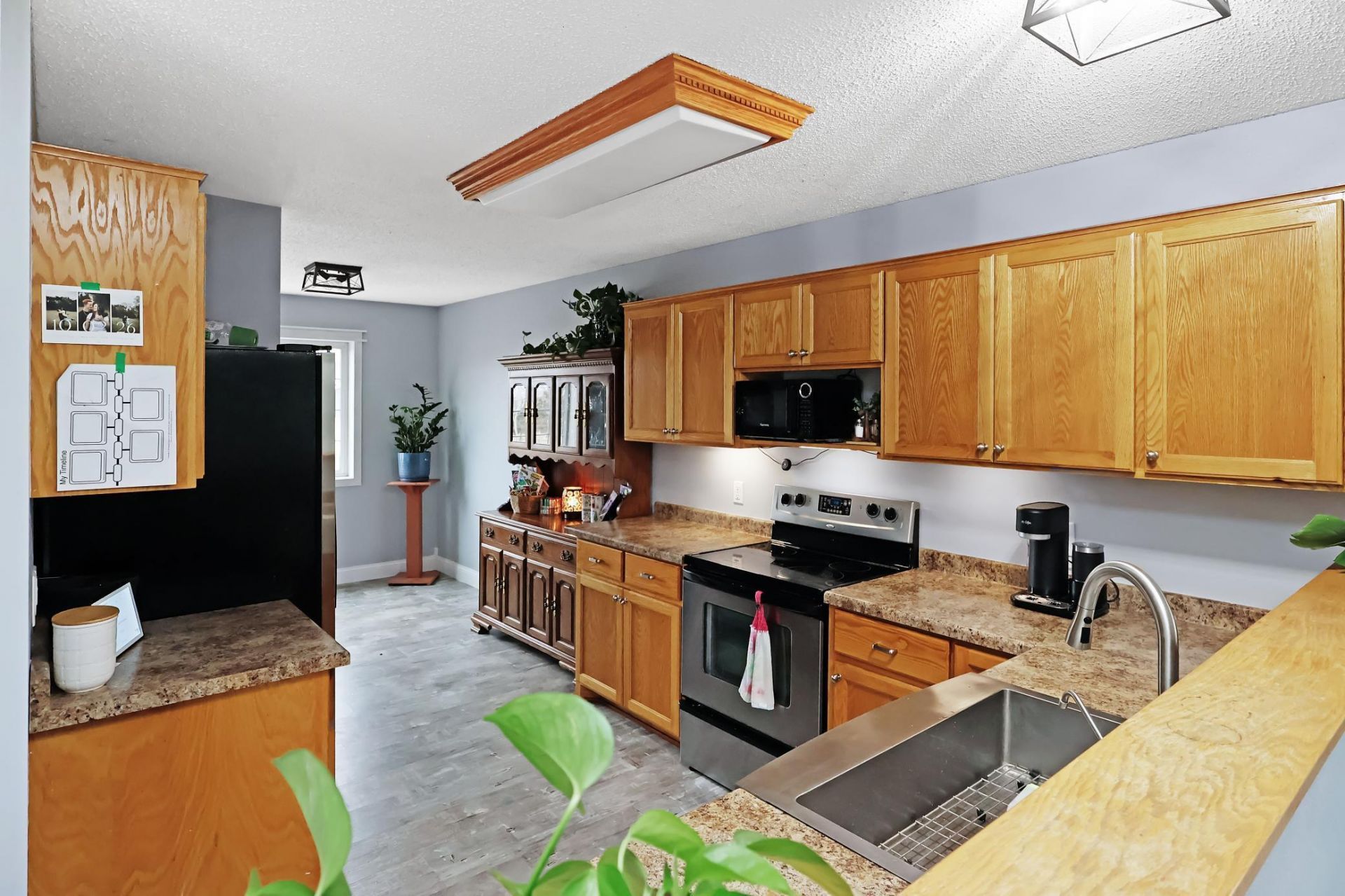 Spacious 5-bedroom, 2-bath home offering over 2,000 finished square feet and a great combination of updates and functionality. The main level features a bright living room with vaulted ceilings and abundant natural light, along with a formal dining area that opens to a patio door leading to space for a future deck. The kitchen includes a breakfast nook, flat-panel cabinetry, and a functional layout. Two bedrooms are located on the upper level, including a primary suite with a large walk-in closet, along with an updated full bath and fresh paint and flooring throughout the upper level. The lower level offers three additional bedrooms, a full bath, and a generous family room providing plenty of space for relaxing or entertaining. Additional features include six-panel doors, central air, a newer high-efficiency furnace and water heater, and an insulated and heated two-stall garage. Situated on a large 1/3-acre city lot, the property includes a new maintenance free fence, a very spacious patio added in 2022, in-ground sprinklers, concrete driveway, and mature landscaping with apple and plum trees. School bus service from Royalton, Sauk Rapids-Rice, and Holdingford is conveniently available nearby. Conveniently located near parks, downtown Rice, and Highway 10 for easy commuting.