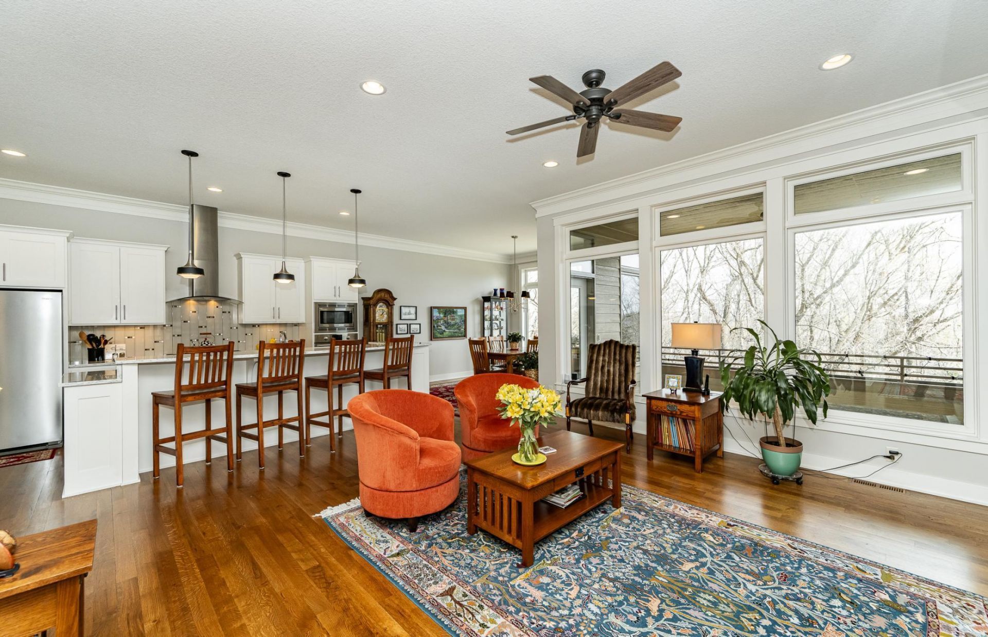 Experience refined living in this exceptional 3600 sq ft luxury home designed for effortless living. This 4-bedroom, 3-bath residence showcases 10 ft ceilings, rich hardwood floors, crown moIding, and expansive windows that flood the main floor with natural light and serene views of the private, tree-lined backyard. The modern chef's kitchen with beautiful granite countertops, plenty of cupboards and pantry seamlessly flow into the elegant living and dining areas, anchored by a stunning fireplace. Step into the screened-in porch to enjoy peaceful outdoor living in complete privacy. The lower level is equally impressive, offering a spacious retreat with a second fireplace and a sophisticated wet bar perfect for entertaining along with a patio for outdoor entertaining. Additional highlights include a heated 3-stall garage and a professionally managed association providing lawn care, snow removal, and sanitation for truly maintenance-free living. A rare opportunity to own a luxury home that blends privacy, comfort, and timeless design in one of Rochester's premier locations.